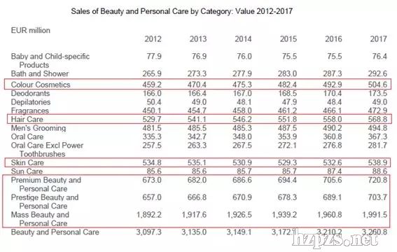 荷蘭化妝品市場增長最快的是彩妝產(chǎn)品,2012年~2017年彩妝產(chǎn)品銷售額平均增長10%,2017年達(dá)到5億460萬歐元。