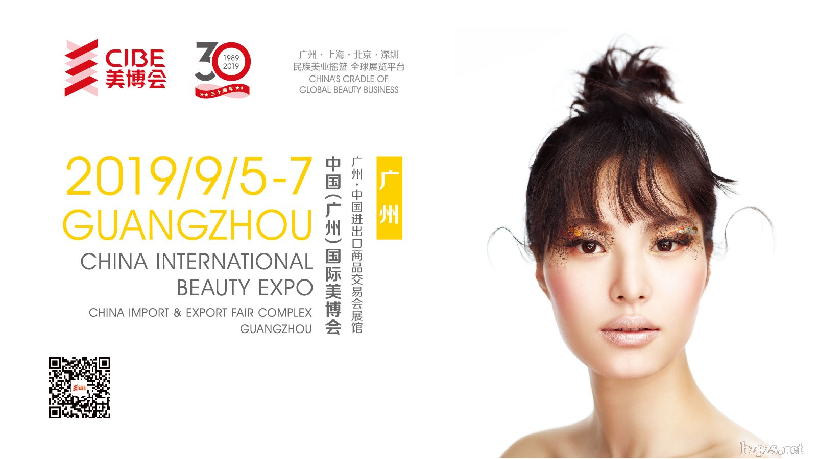 時針跳動,1989年-2019年,成立,移師,升級,開拓,創(chuàng)新,從0走向30,從無到有,從廣州,上海,北京,深圳走向全國,走出世界,美博會敢闖敢試,敢為人先。