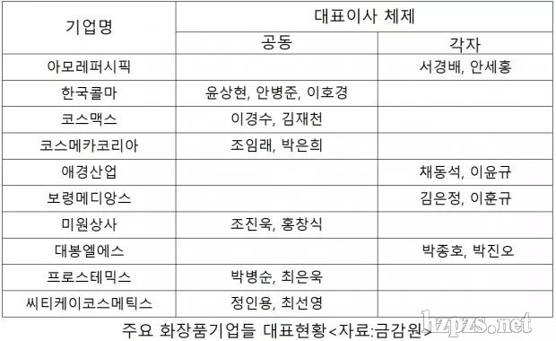 根據(jù)對(duì)韓國(guó)金融監(jiān)督院公示系統(tǒng)(以8月13日為準(zhǔn))顯示的10家化妝品上市企業(yè)領(lǐng)導(dǎo)現(xiàn)狀分析,韓國(guó)科瑪、科絲美詩(shī)、COSMECCA KOREA、美源商事、Prostemics、CTK等6家企業(yè)是共同領(lǐng)導(dǎo)體制,愛(ài)茉莉太平洋、愛(ài)敬產(chǎn)業(yè)、保寧米迪恩、DAEBONG LS等4家為各自領(lǐng)導(dǎo)體制。