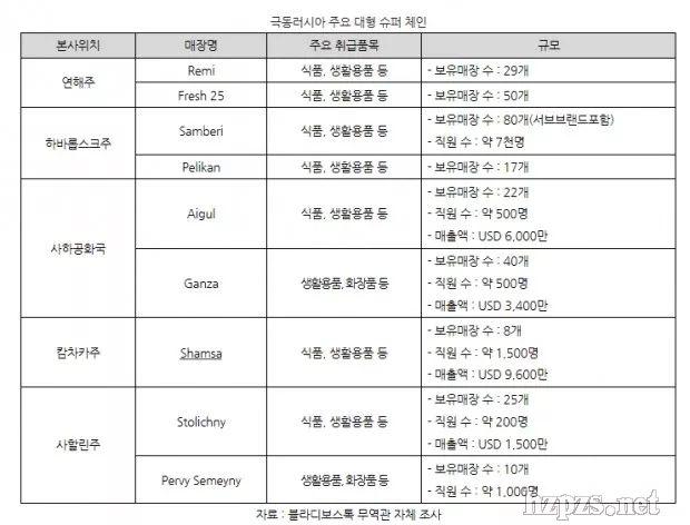 遠(yuǎn)東地區(qū)除了代表性大型零售連鎖店Samberi以外,還有很多其他連鎖店。