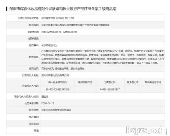 深圳市輝春化妝品公司銷售“違規(guī)化妝品” 被罰2020-4-16 9:31:3 來源:深圳市市場監(jiān)督管理局(深圳市知識產權局) 閱讀數(shù):