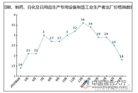 2020年1月印刷、制藥、日化及日用品生產(chǎn)專用設(shè)備制造工業(yè)生產(chǎn)者出廠價(jià)格指數(shù)為103.4,同比增長(zhǎng)3.4%。