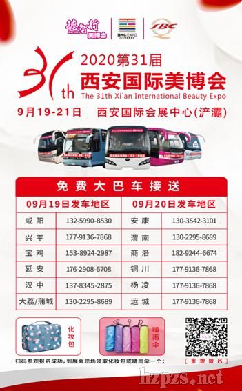 時間:09月19-21日 地點:西安國際會展中心 9月19-21日,由德智行國際展覽集團舉辦的2020第31屆西安國際美博會將在西安國際會展中心(浐灞)盛大召開。  據(jù)悉本屆美博會預計600家品牌展商參展、2000個國際品牌盛裝亮相、1.5萬平米展示面積,覆蓋醫(yī)療美容、美容美發(fā)、美甲紋繡、化妝品、美業(yè)培訓機構(gòu)、美業(yè)微電商、大健康及養(yǎng)生保健、母嬰用品等美業(yè)全產(chǎn)業(yè)鏈。北京宏強集團、廣州朗黛、慧康集團、康威美爾、創(chuàng)宏儀器、深圳暨源肽諾、聚億美、奢藝祛疤、西安凱特百優(yōu)、欣奕除疤、廣州賽姿、山東夢斯綺生物、南京偉思好翼、巨咖時代、岐山公頭療、絢麗美國際、曲祖顏方、伊斯頓生物、帥薇美發(fā)、成都嬌詩蘭等品牌企業(yè)均亮相本屆美博會,展出各自的主打產(chǎn)品、技術和項目,交流最新的行業(yè)信息資訊。 目前已開通咸陽、漢中、渭南、商洛、漢中、寶雞和延安等12個地市免費大巴車接送專業(yè)觀眾到場參觀,詳情咨詢:17791367868。  本屆博覽會將采取無接觸式辦理參觀證,線上登記為本屆美博會唯一參觀登記方式,觀眾需關注”“西安國際美博會”點擊右下方“觀眾入口”進入“參觀報名”,填寫相關信息完成參觀報名,展會現(xiàn)場需出示西安一碼通,綠碼且體溫正常方能入場。 大美有道,美行天下。您就是美的創(chuàng)造者,您就是美的傳播者,您也將是美的受益者,西安國際美博會期待您的加入,與您共享國際美業(yè)盛宴! 參展、參觀熱線:152 0299 6599劉經(jīng)理
