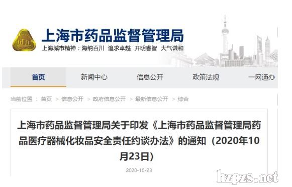 上海市藥品監(jiān)督管理局網(wǎng)站 上海市藥品監(jiān)督管理局關(guān)于印發(fā)《上海市藥品監(jiān)督管理局藥品醫(yī)療器械化妝品安全責(zé)任約談辦法》的通知(2020年10月23日)  各區(qū)市場監(jiān)管局、臨港新片區(qū)市場監(jiān)管局,市局相關(guān)處室、各直屬單位: 為進(jìn)一步強(qiáng)化藥品、醫(yī)療器械、化妝品安全監(jiān)管,落實(shí)企業(yè)主體責(zé)任,控制和預(yù)防藥品、醫(yī)療器械、化妝品違法行為和安全事件,提升監(jiān)管效能,根據(jù)《中華人民共和國藥品管理法》《中華人民共和國疫苗管理法》《醫(yī)療器械監(jiān)督管理?xiàng)l例》《化妝品監(jiān)督管理?xiàng)l例》等有關(guān)規(guī)定,結(jié)合本市實(shí)際,制定了《上海市藥品監(jiān)督管理局藥品醫(yī)療器械化妝品安全責(zé)任約談辦法》,并經(jīng)2020年第15次局務(wù)會審議通過,現(xiàn)印發(fā)給你們,請于2020年12月1日起執(zhí)行。 特此通知。 上海市藥品監(jiān)督管理局 2020年10月22日 (公開范圍:主動(dòng)公開) 上海市藥品監(jiān)督管理局藥品醫(yī)療器械化妝品安全責(zé)任約談辦法 第一條(目的和依據(jù))為進(jìn)一步強(qiáng)化藥品、醫(yī)療器械、化妝品安全監(jiān)管,落實(shí)企業(yè)主體責(zé)任,提升監(jiān)管效能,控制和預(yù)防藥品、醫(yī)療器械、化妝品違法行為和安全事件,切實(shí)保障公眾健康,根據(jù)《中華人民共和國藥品管理法》《中華人民共和國疫苗管理法》《醫(yī)療器械監(jiān)督管理?xiàng)l例》和《化妝品監(jiān)督管理?xiàng)l例》等規(guī)定,制定本辦法。 第二條(適用范圍)本市各級藥品監(jiān)管部門依據(jù)職責(zé),在依法實(shí)施監(jiān)督管理過程中,對藥品上市許可持有人,化妝品注冊人、備案人,藥品、醫(yī)療器械和化妝品生產(chǎn)經(jīng)營單位的法定代表人、主要負(fù)責(zé)人或相關(guān)責(zé)任人實(shí)施約談的行為,適用本辦法。 第三條(約談定義)本辦法所稱的約談,是指本市各級藥品監(jiān)管部門為防范和控制藥品質(zhì)量安全風(fēng)險(xiǎn),消除藥品、醫(yī)療器械和化妝品安全隱患,針對藥品上市許可持有人,化妝品注冊人、備案人,藥品、醫(yī)療器械和化妝品生產(chǎn)經(jīng)營單位存在的違法違規(guī)行為或安全隱患,通過與其法定代表人、主要負(fù)責(zé)人或相關(guān)責(zé)任人員進(jìn)行提醒告誡、督促整改的談話,督促其正確認(rèn)識問題、分析原因,并督促其整改,全面落實(shí)主體責(zé)任的工作制度。 第四條(約談原則)本市各級藥品監(jiān)管部門約談藥品上市許可持有人,化妝品注冊人、備案人,藥品、醫(yī)療器械和化妝品生產(chǎn)經(jīng)營單位的法定代表人、主要負(fù)責(zé)人或相關(guān)責(zé)任人,應(yīng)當(dāng)遵循屬地管理、依法規(guī)范、注重實(shí)效的原則。 第五條(約談情形)藥品上市許可持有人,化妝品注冊人、備案人,藥品、醫(yī)療器械和化妝品生產(chǎn)經(jīng)營單位出現(xiàn)下列情形之一的,本市各級藥品監(jiān)管部門可以約談該單位法定代表人、主要負(fù)責(zé)人或相關(guān)責(zé)任人員: (一)發(fā)生藥品、醫(yī)療器械和化妝品安全事件的; (二)有證據(jù)證明可能存在安全隱患,且未及時(shí)采取措施消除的; (三)產(chǎn)品經(jīng)監(jiān)督抽檢或風(fēng)險(xiǎn)監(jiān)測為不合格或結(jié)果異常,可能存在重大安全隱患的; (四)群眾投訴舉報(bào)、被媒體曝光、協(xié)查案件較多或影響較大的; (五)注冊資料虛假、臨床試驗(yàn)用樣本存在真實(shí)性問題的; (六)質(zhì)量管理體系存在嚴(yán)重缺陷且整改不到位的; (七)產(chǎn)品召回不及時(shí)、不到位的; (八)信用等級評定為失信或嚴(yán)重失信的; (九)其他法律法規(guī)規(guī)定需要約談的情形。 第六條(屬地管理)各級藥品監(jiān)管部門根據(jù)職責(zé),對轄區(qū)內(nèi)藥品上市許可持有人,化妝品注冊人、備案人,藥品、醫(yī)療器械和化妝品生產(chǎn)經(jīng)營單位進(jìn)行約談。 對具有下列情形之一的,由市藥品監(jiān)管局組織約談: (一)發(fā)生重大(Ⅱ級)及以上藥品和醫(yī)療器械安全突發(fā)事件的; (二)發(fā)生社會影響較大的化妝品安全事件的; (三)違法違規(guī)行為在本市范圍內(nèi)具有重大影響的; (四)國家藥品監(jiān)管局和市藥品監(jiān)管局通過監(jiān)督檢查、抽樣檢驗(yàn)、風(fēng)險(xiǎn)監(jiān)測、輿情監(jiān)測發(fā)現(xiàn)藥品、醫(yī)療器械和化妝品生產(chǎn)經(jīng)營過程存在重大安全隱患的; (五)上級部門指定由市藥品監(jiān)管局負(fù)責(zé)約談的; (六)其他須由市藥品監(jiān)管局負(fù)責(zé)約談的。 第七條(約談對象)被約談單位參加約談的責(zé)任人員包括下列人員: (一)法定代表人或主要負(fù)責(zé)人; (二)質(zhì)量負(fù)責(zé)人或其他相關(guān)責(zé)任人和工作人員; (三)其他需要約談的人員。 法定代表人或主要負(fù)責(zé)人因特殊情況無法參加約談而授權(quán)其他人的,應(yīng)當(dāng)向組織約談的藥品監(jiān)管部門提出申請,被授權(quán)人持法定代表人或主要負(fù)責(zé)人的授權(quán)書按時(shí)參加約談。 第八條(參加約談人員)組織約談的藥品監(jiān)管部門應(yīng)當(dāng)至少安排2名藥品監(jiān)