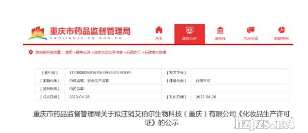 重慶市藥品監(jiān)督管理局關(guān)于擬注銷艾伯爾生物科技(重慶)有限公司《化妝品生產(chǎn)許可證》的公示2023-5-5 9:28:5 來(lái)源:重慶市藥品監(jiān)督管理局網(wǎng)站 閱讀數(shù):
