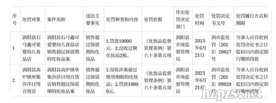 安徽省亳州市渦陽縣人民政府網(wǎng)站12日發(fā)布渦陽縣市場監(jiān)管局2023年6月化妝品行政處罰信息公示,內(nèi)容顯示,渦陽縣石弓鑫可愛嬰幼兒食品店銷售超過保質(zhì)期的化妝品被罰款10000元,另一家日用百貨店銷售超過保質(zhì)期的化妝品同樣被罰款10000元。