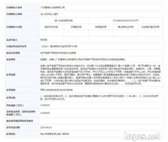 廣東康唯化妝品有限公司被罰款 2 萬元2024-9-24 8:59:51 閱讀數(shù):