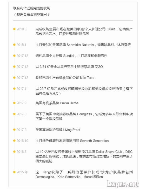 聯(lián)合利華這幾年的確在執(zhí)行激進(jìn)的收購(gòu)策略,僅僅是過(guò)去2年就完成了11宗收購(gòu)交易,涉及個(gè)人護(hù)理、彩妝、食品等多個(gè)領(lǐng)域。