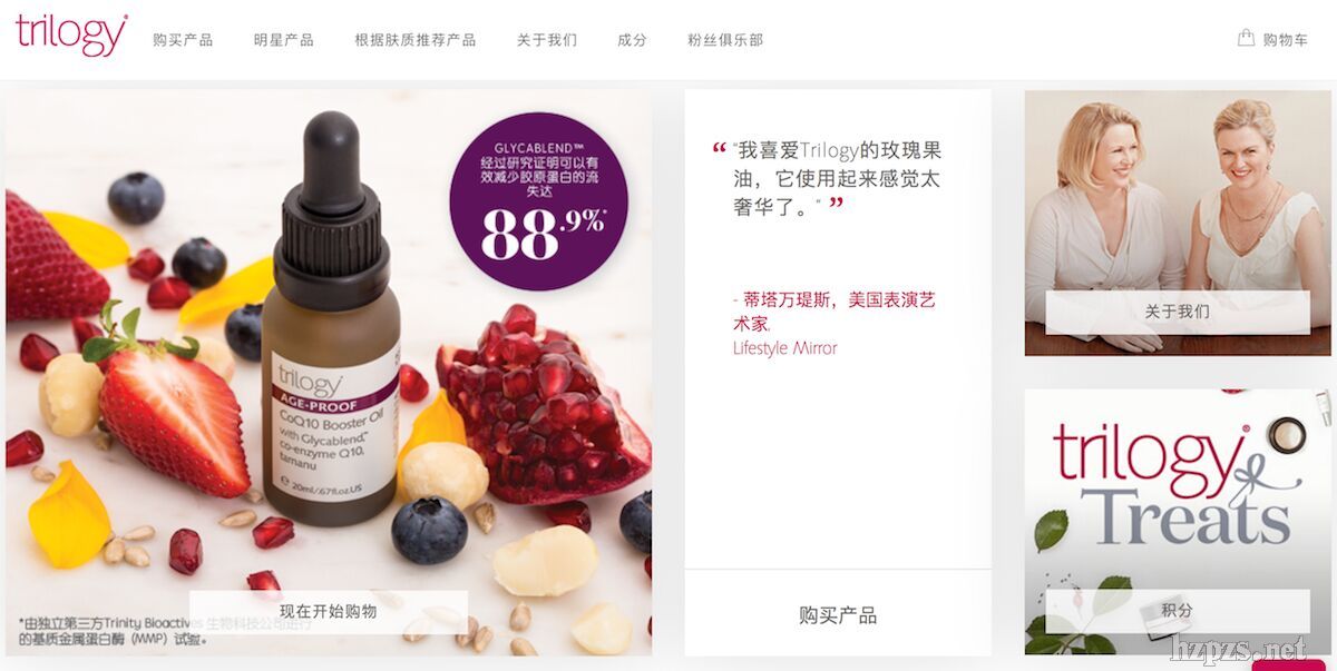 2002年,一對(duì)新西蘭姐妹 Sarah Gibbs 和 Catherine de Groot 發(fā)現(xiàn)了玫瑰果油的魔力,并創(chuàng)立了 Trilogy 品牌。經(jīng)過(guò)十多年的發(fā)展,TIL 已經(jīng)從當(dāng)年的只有五個(gè)面部護(hù)理產(chǎn)品的小眾品牌,發(fā)展成為擁有多達(dá)40種產(chǎn)品的全球知名品牌,包含了面部護(hù)理、身體護(hù)理和頭發(fā)護(hù)理系列,在全世界20多個(gè)國(guó)家進(jìn)行銷售。