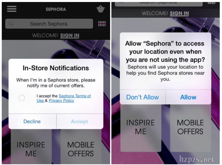 Beacon技術可以幫助絲芙蘭app自動識別店內用戶,為他們提供店內地圖、日常促銷活動等信息,也可以讓店主清楚地了解到消費者的在線購物車和愿望清單等內容,從而打造更加個性的購物及互動體驗。比如說,當用戶瀏覽某個化妝品專柜時,絲芙蘭就會向用戶發(fā)送定制化的offer。不過,在此之前,用戶需要在手機設置一欄里點擊同意接受來自絲芙蘭app的提醒,否則這個辦法就行不通了。