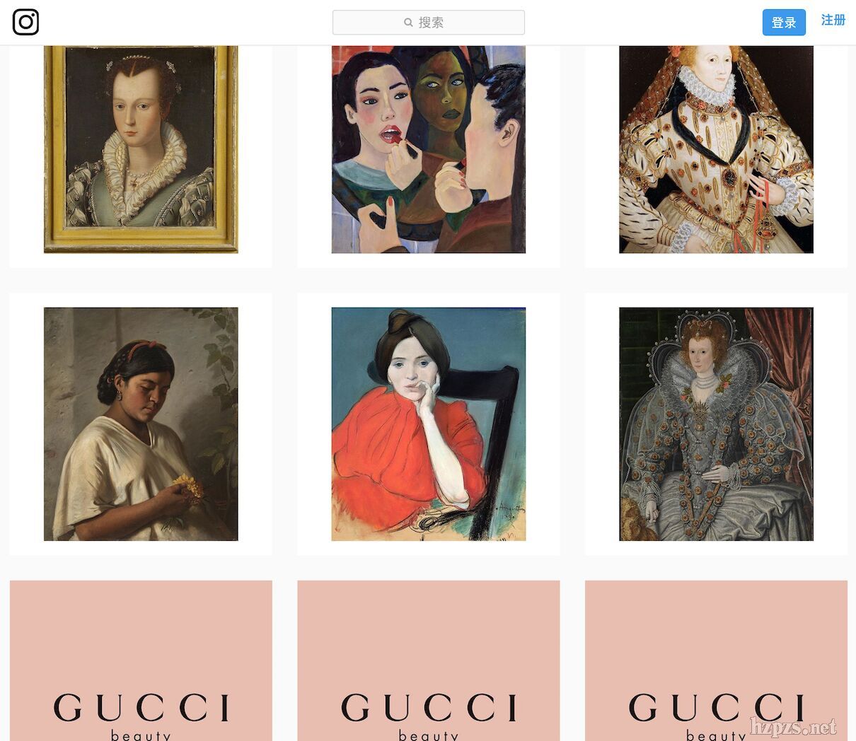 @guccibeauty 目前已經(jīng)發(fā)布30條狀態(tài),共收獲了2.55萬名粉絲,但沒有一條狀態(tài)的內(nèi)容用于宣傳品牌的美妝產(chǎn)品,都是從全球各地博物館精挑細(xì)選的歷史畫作的圖片,并附上5名藝術(shù)評(píng)論家提供的,有關(guān)作品背景、出處等資料。