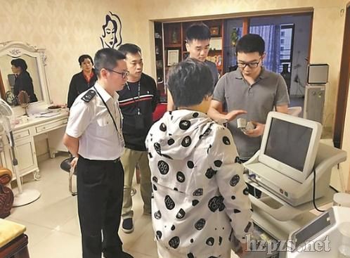 執(zhí)法人員現(xiàn)場查獲無中文標(biāo)簽的美容設(shè)備。