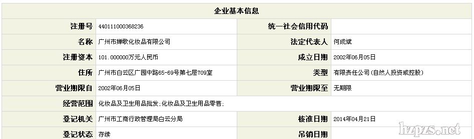廣州市嬋歌化妝品有限公司