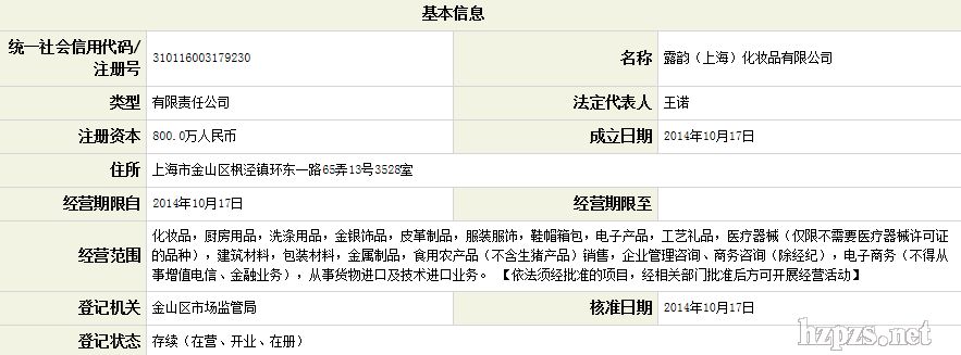 露韻(上海)化妝品有限公司