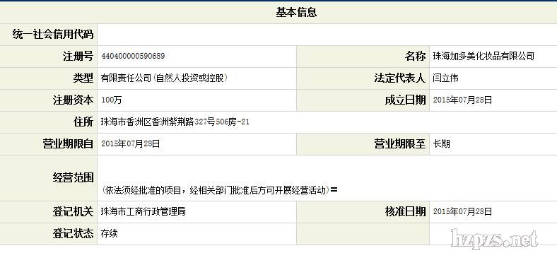 珠海加多美化妝品有限公司