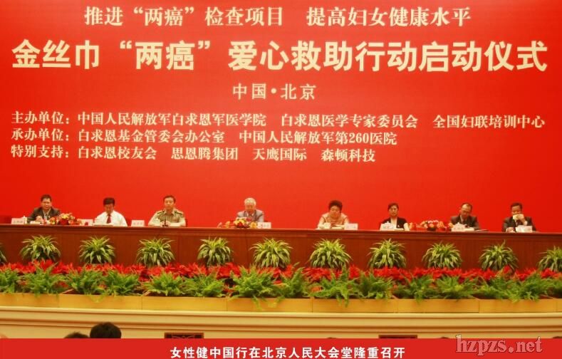 推進“兩癌”檢查項目,提高婦女健康水平,暨金絲巾“兩癌”愛心救助啟動儀式于2011年5月23日下午2時30分在北京人民大會堂小禮堂隆重舉行。