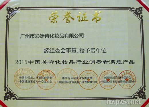 2015年全國美容化妝品消費者滿意產品