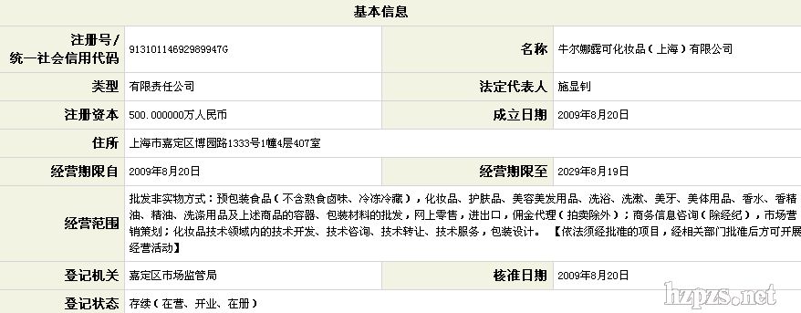 牛爾娜露可化妝品(上海)有限公司 -