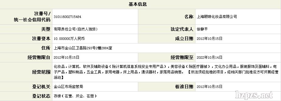 上海頤琳化妝品有限公司