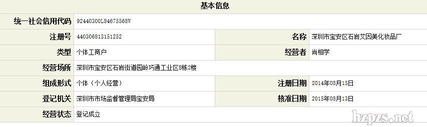 深圳市寶安區(qū)石巖艾因美化妝品廠 -
