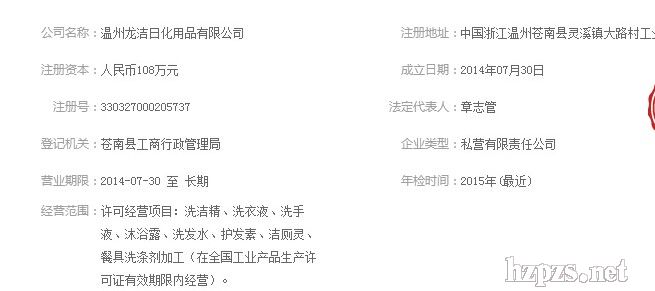 溫州龍潔日化用品有限公司 章志管 先生 地 址: 蒼南縣 靈溪鎮(zhèn)大路村工業(yè)區(qū)8號(hào)