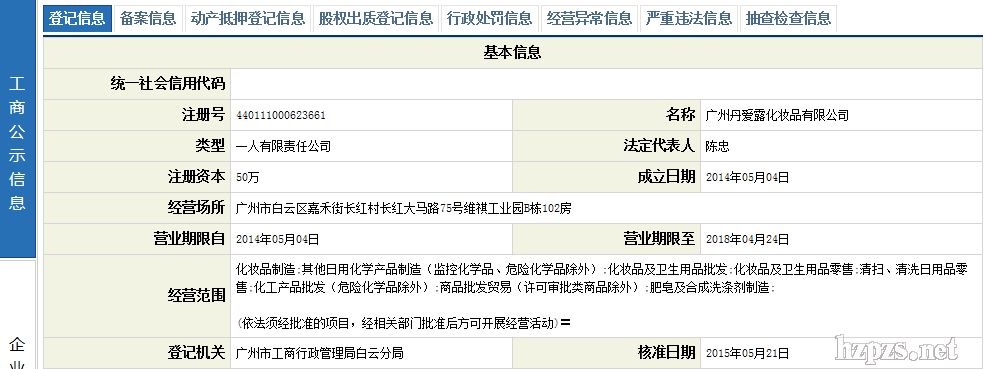 廣州丹愛露化妝品有限公司 -