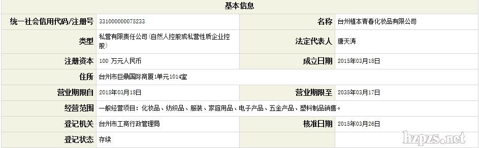 植本青春化妝品有限公司 顧海兵 地 址: 浙江臺(tái)州