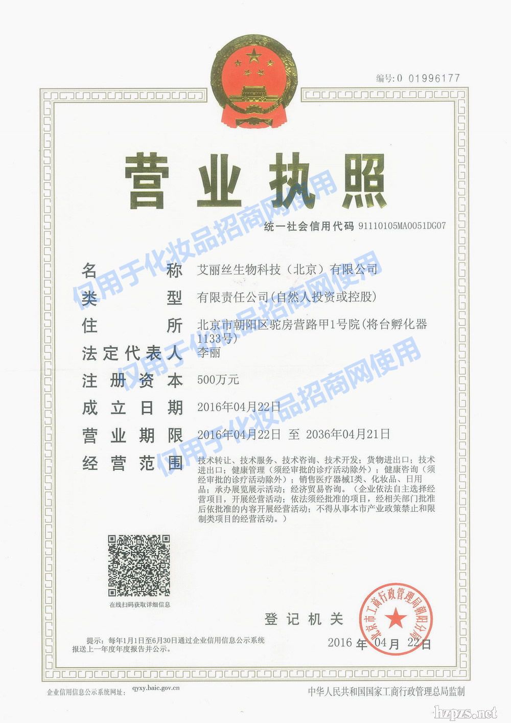 艾麗絲生物科技(北京)有限公司 李先生 地 址: 北京市朝陽區(qū)駝房營路甲1號院(將臺孵化器1133號)