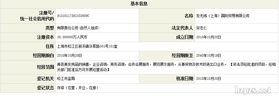 發(fā)無(wú)域(上海)國(guó)際貿(mào)易有限公司 -