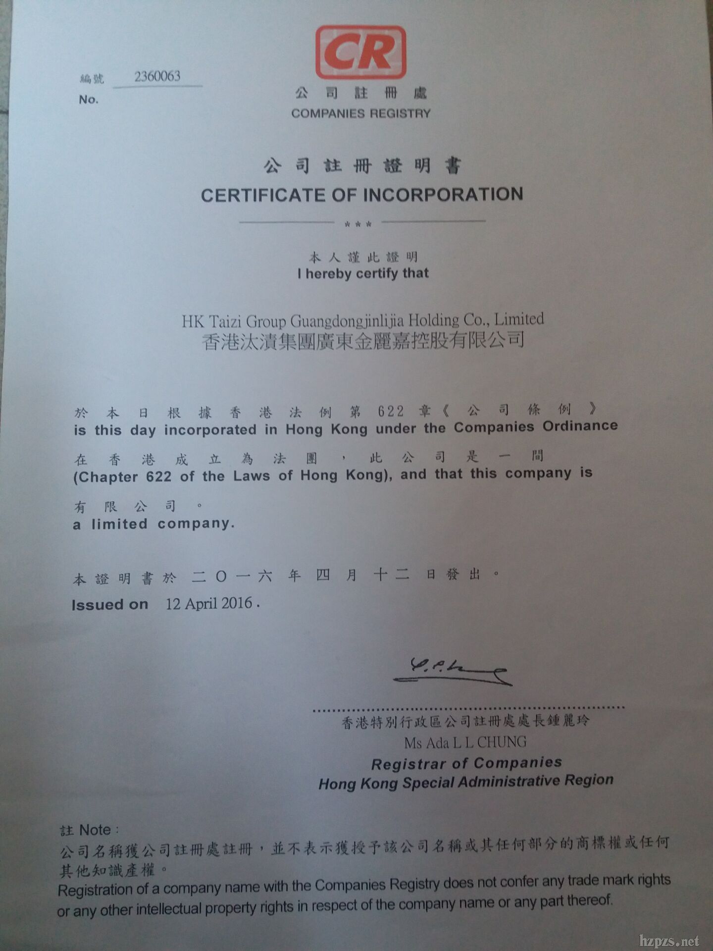 香港汰漬集團(tuán)廣東金麗嘉控股有限公司 -