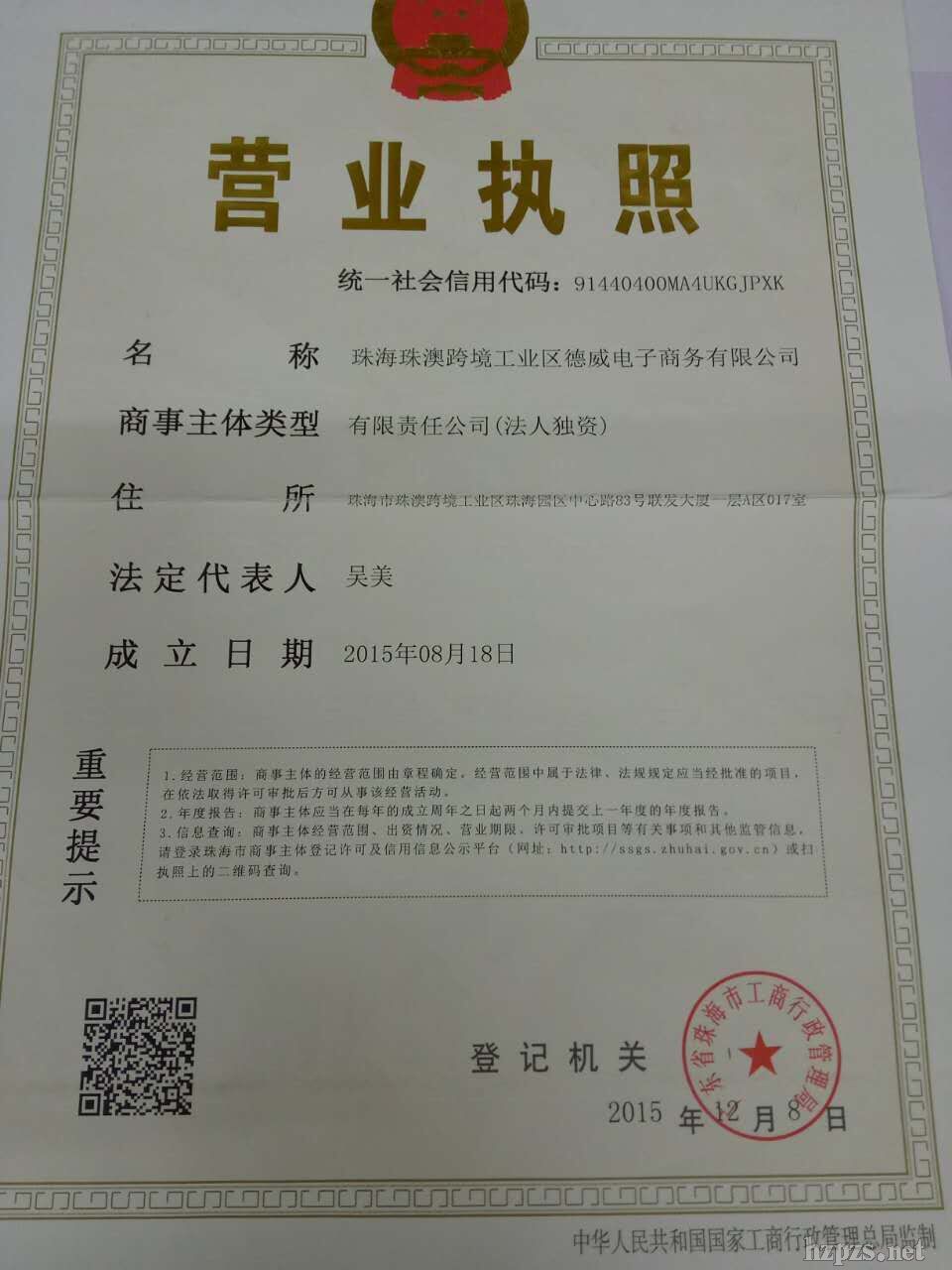 珠海珠澳跨境工業(yè)區(qū)德威電子商務(wù)有限公司 -