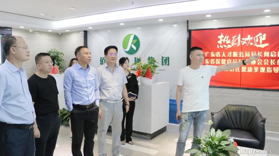 7月10日下午,廣東省人才服務(wù)局局長何啟謀、廣東省保健食品行業(yè)協(xié)會會長彭平、廣東民企人力資源開發(fā)服務(wù)中心有限公司董事長楊振生、廣東欣鑫環(huán)?萍加邢薰径麻L鄭繼友一行蒞臨佰氏健康參觀指導(dǎo),佰氏健康(廣州)大健康科技有限公司董事長張恒賓,董事長助理代佩杉,人事行政經(jīng)理李小敏隨行陪同接待。
