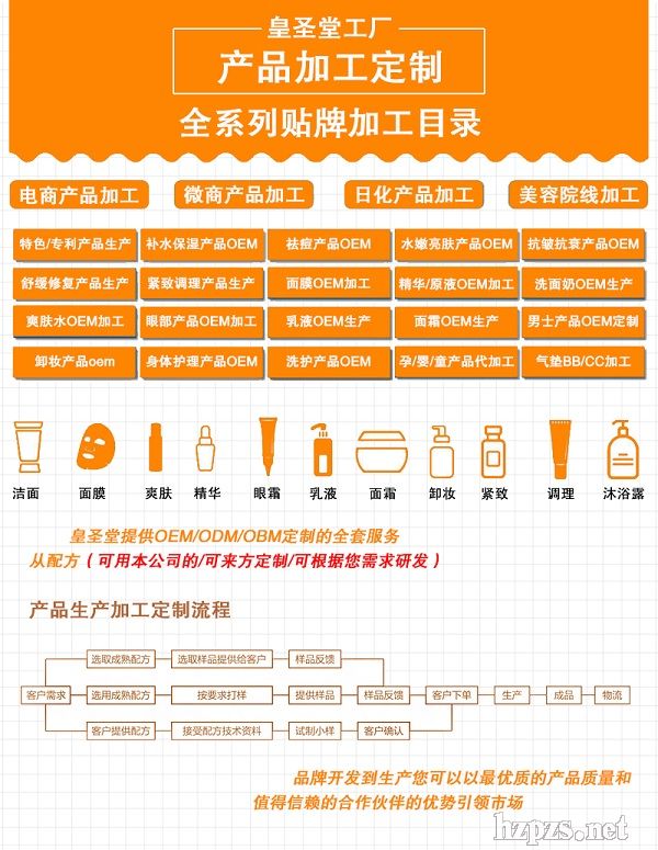 山東皇圣堂化妝品代加工廠家:面膜代加工 精華代加工 械字號面膜加工 祛痘霜代加工 彩妝代加工;化妝品代理:面膜代理 水乳霜代理 口紅代理 祛痘套盒代理 精華液原液代理等等;oem/odm:代加工膏藥、乳膏、化妝品、面膜、彩妝、水凝膠、藥粉、藥包、噴劑、保健品貼牌加工各種產(chǎn)品歡迎來電咨詢。