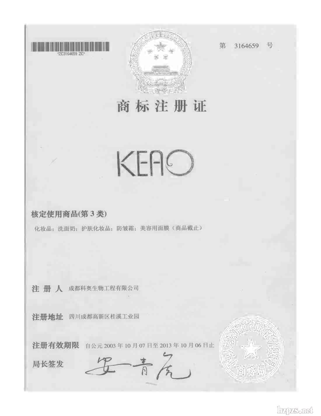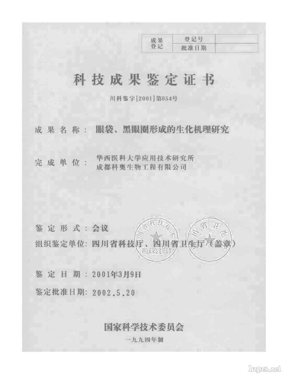 科學(xué)技術(shù)成果鑒定證書(眼袋、黑眼圈機理)