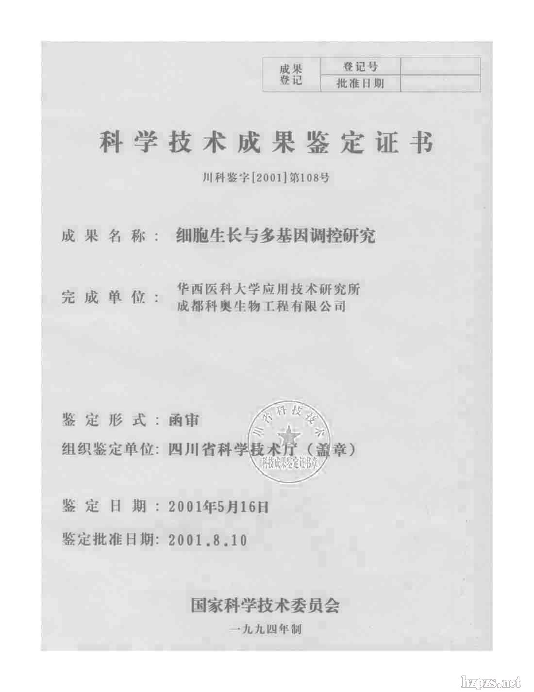 科學(xué)技術(shù)成果鑒定證書