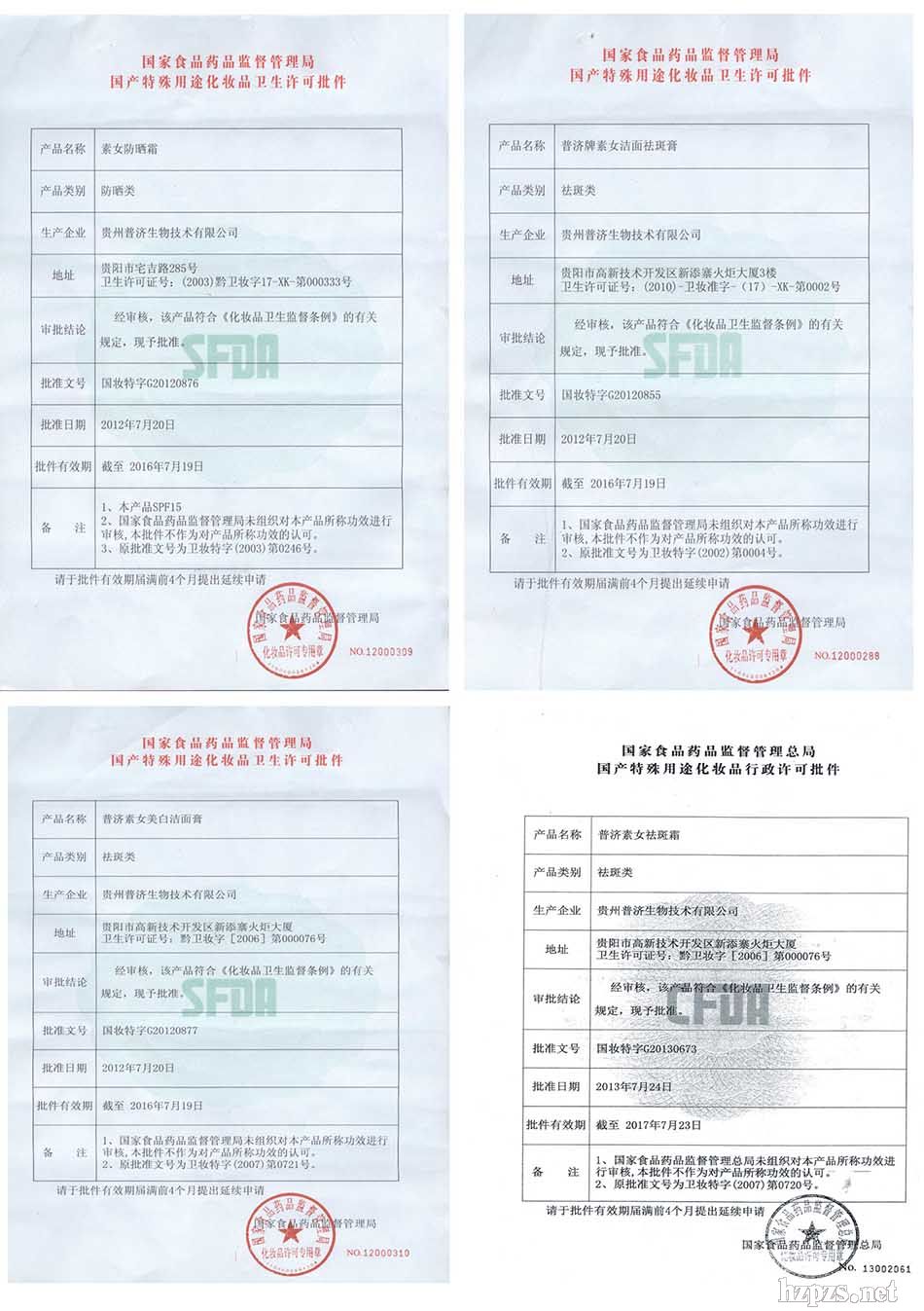 國(guó)家食品藥品監(jiān)督管理局批準(zhǔn)認(rèn)證的特殊用途國(guó)妝特字文號(hào):