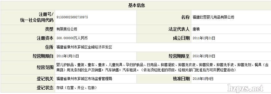 福建歐恩嬰兒用品有限公司