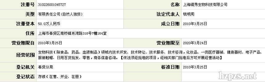 上海緹秀生物科技有限公司 錢明周 地 址: 南橋鎮(zhèn)肖灣路318號