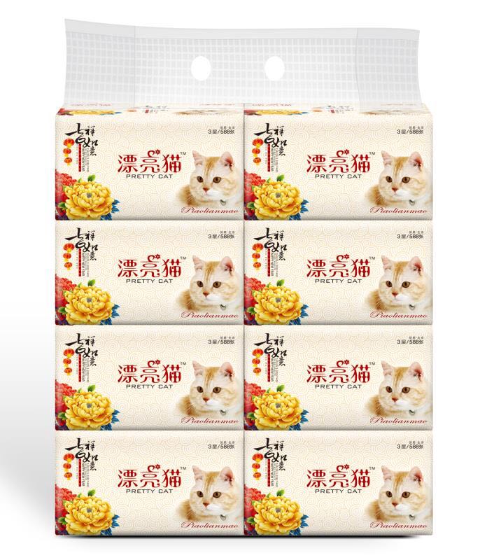漂亮貓發(fā)財8包抽取式面紙