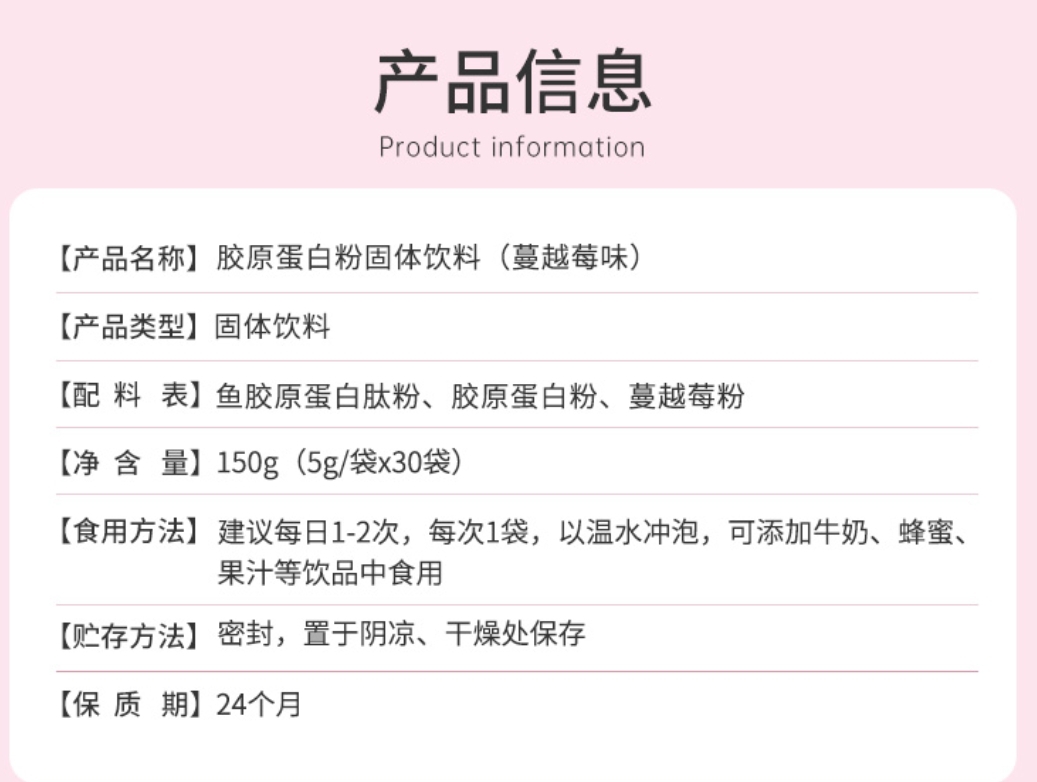 【品名】:膠原蛋白固體飲料(蔓越莓味)